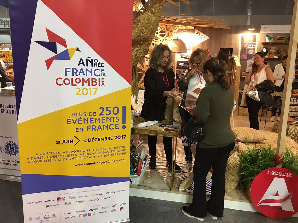 La feria Hogar y objetos se realizó del 7 al 12 de septiembre en el parque de las Exposiciones de París. Artesanas del departamento del Atlántico, vinculadas al programa Arte-Sana de la secretaria de la Mujer, Equidad y Género del departamento en alianza con la asociación de Artesanas, estuvieron representando al Atlántico en feria del Hogar en la capital francesa donde estuvieron congregados otros 70 países. Durante las jornadas, el stand contó con la visita de más de 2000 personas, logrando además establecer contactos de negocios con 27 negociadores procedentes de 22 países. Las emprendedoras tuvieron la oportunidad de mostrar sus productos reciclables como mecedoras, mesas, lámparas y tapetes, entre otros. La presencia en esta feria se logró mediante convocatoria de ProColombia donde la secretaría de la Mujer y Equidad de Género participó con el proyecto Arte-Sana. El proyecto ha logrado desde el 2016, que 600 mujeres artesanas e capaciten. Ellas próximamente elaborarán productos con fibra de plátano para ampliar la gama de materia prima.