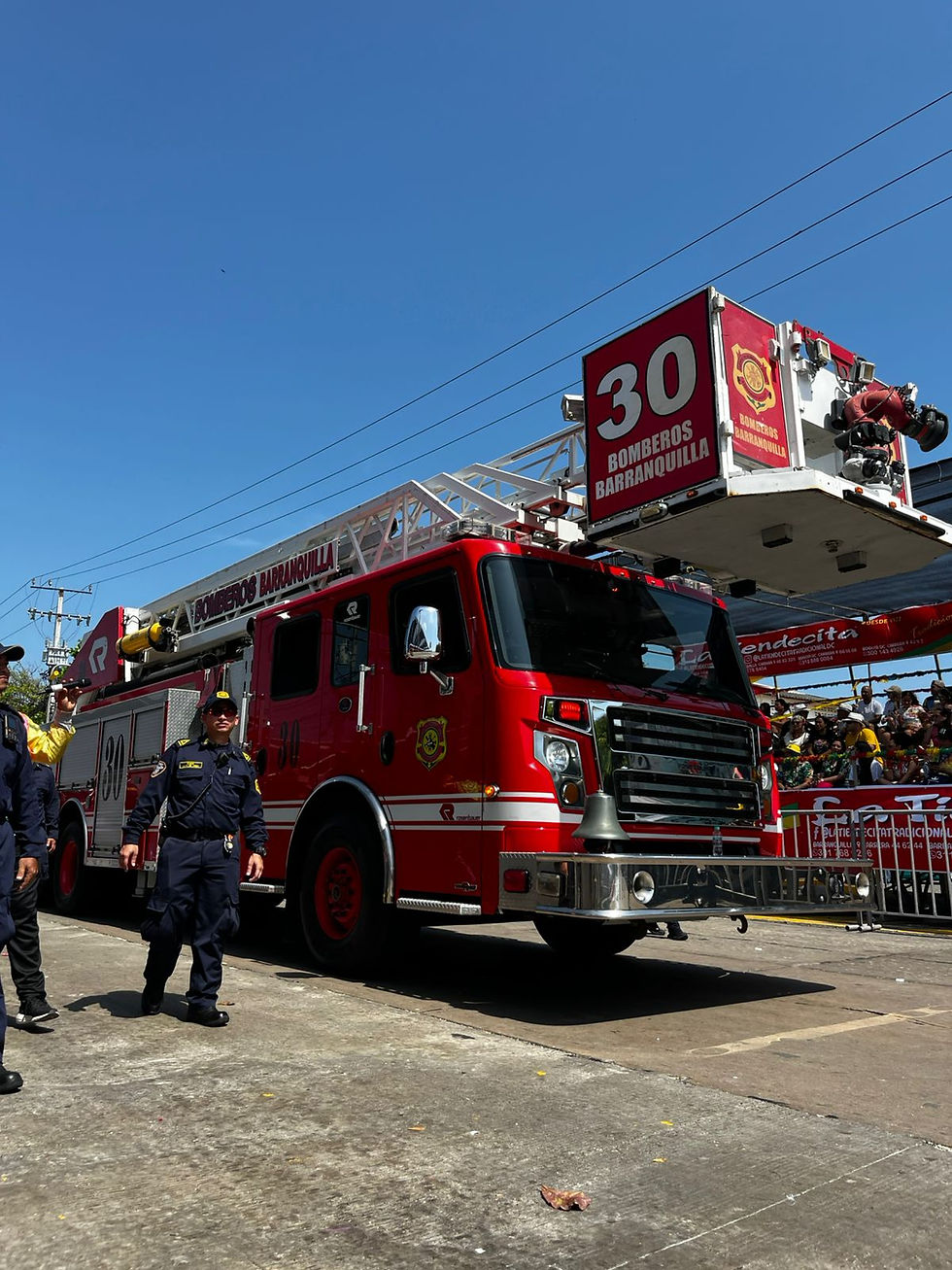 Lo prometido es deuda. Siendo las 10:30 de la mañana la Vía 40 empezó a vibrar al ritmo de los tambores y los aplausos del público asistente. Como es costumbre, hace presencia el camión del cuerpo de bomberos, que al sonar de la sirena va anunciando el inicio del desfile.