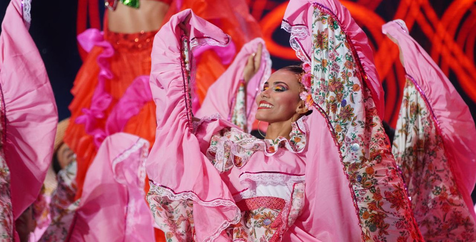 Los ritmos folclóricos que identifican a diferentes zonas de la región Caribe como el porro, fandango y puya, dieron apertura al espectáculo de coronación de Isabella Chams Vega, quien acompañada por cerca de 400 bailarines demostró, una vez más, que nació para ser reina del Carnaval de Barranquilla.